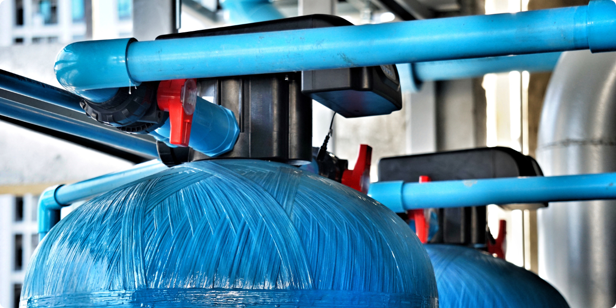 2. Descalcificación con regeneración contracorriente en lecho empaquetado (2 botellas de 1600 litros de resina x2), con caudal de 20 m3/h x2
