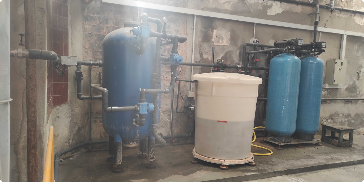 • Se filtra y descalcifica el agua, para alimentar con 45.000 m3/año una caldera que genera 33.600 tv/año de vapor