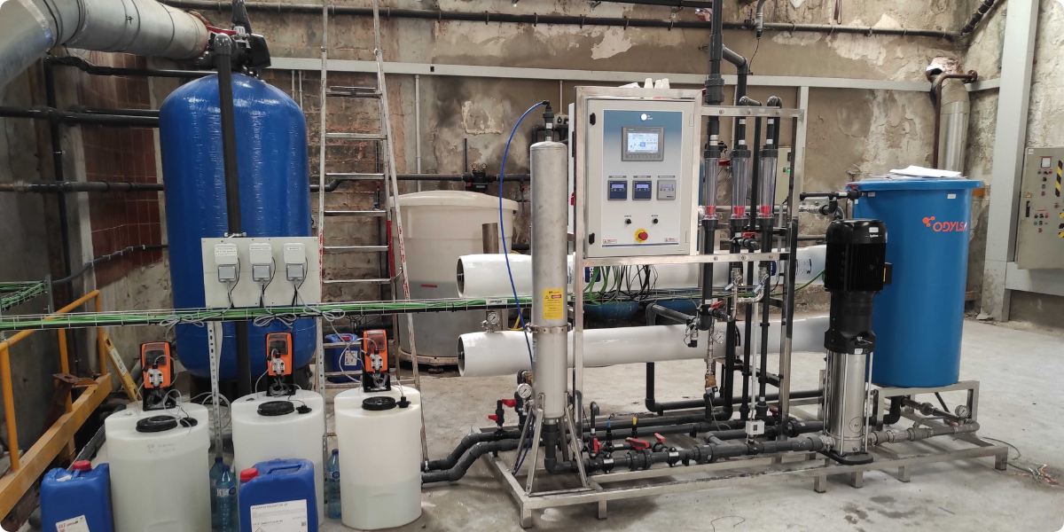 4. Montaje de un sistema de Ósmosis Inversa con una producción de permeado de 3,5 m3/h, más el tratamiento químico necesario (reductor de pH, antiincrustante y biocida)